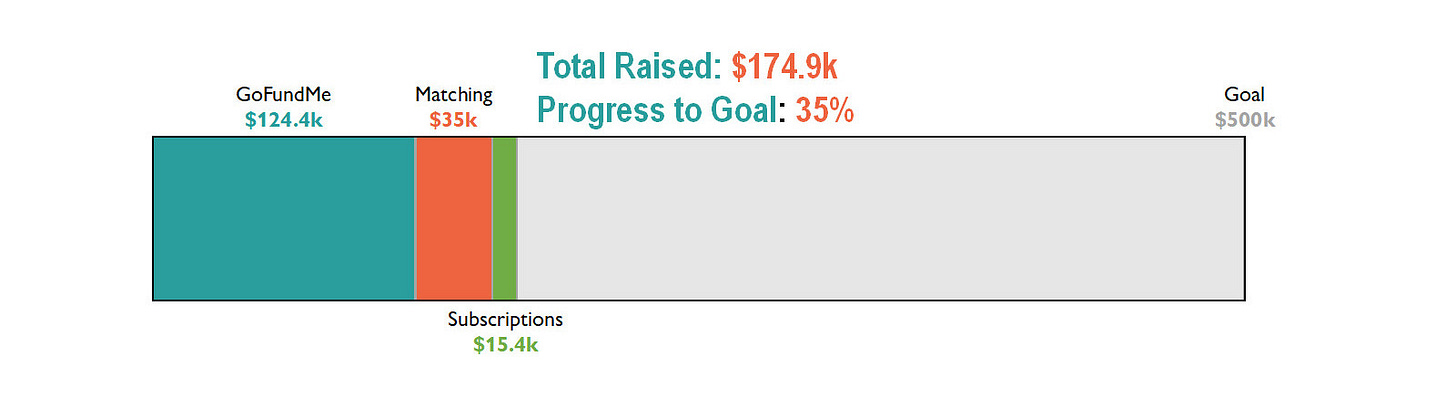 Over the holiday, we hit one-third of our fundraising goal. Since then we have averaged $1,000 a day in donations and hit 35% of our goal.
